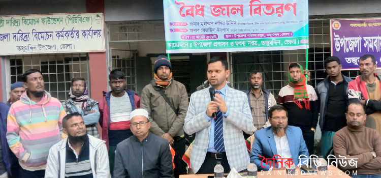 উপজেলা প্রশাসন ও মৎস্য দপ্তরের আয়োজনে ভোলার তজুমদ্দিনে ২০২৫-২৬ অর্থ বছরে ইলিশ সম্পদ উন্নয়ন ও ব্যবস্থাপনা প্রকল্পের আওতায় ইলিশ আহরণকারী জেলেদের মাঝে বৈধ জাল বিতরণ করা হয়েছে।