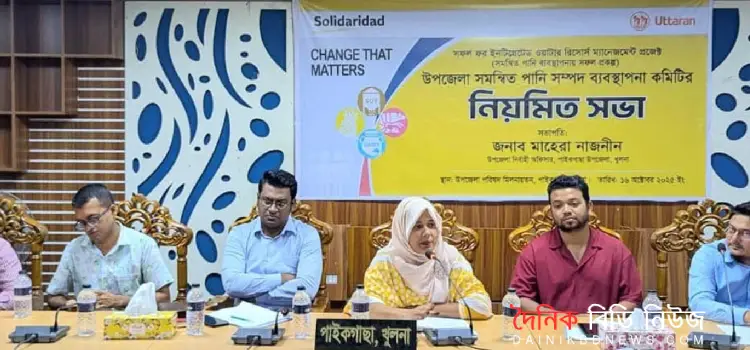 পাইকগাছায় সফল ফর ইন্টিগ্রেটেড ওয়াটার রিসোর্স ম্যানেজমেন্ট (সফল-IWRM) প্রকল্পের উপজেলা সমন্বিত পানি সম্পদ ব্যবস্থাপনা কমিটির নিয়মিত সভা অনুষ্ঠিত হয়েছে।বৃহস্পতিবার (১৬ অক্টোবর) সকালে উপজেলা পরিষদ মিলনায়তনে আয়োজিত সভায় সভাপতিত্ব করেন উপজেলা নির্বাহী অফিসার মাহেরা নাজনীন।সভায় বিশেষ অতিথি হিসেবে উপস্থিত ছিলেন নবাগত সহকারী কমিশনার (ভূমি) মোঃ ফজলে রাব্বী, সিনিয়র উপজেলা মৎস্য কর্মকর্তা সৈকত মল্লিক, উপজেলা প্রকৌশলী মোঃ শাফিন শোয়েব, সলিডারিডাড-এর সিনিয়র প্রোগ্রাম অফিসার কৃষিবিদ এস এম ফেরদৌস এবং উত্তরণ-এর প্রকল্প ব্যবস্থাপক কৃষিবিদ মোহাম্মদ ইকবাল হোসেন, জনস্বাস্থ্য প্রকৌশল অধিদপ্তরের সহকারী প্রকৌশলী প্রশান্ত কুমার পাল।