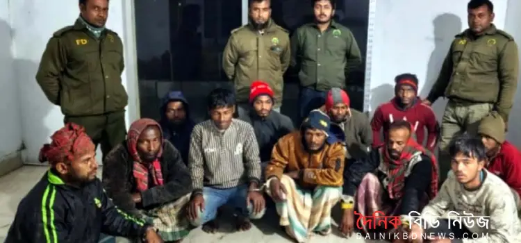 এর আগে মঙ্গলবার (৯ ডিসেম্বর) সন্ধ্যায় শরণখোলা রেঞ্জের কটকা অভয়ারণ্য কেন্দ্রের কাবলোতলা খালে অভিযান চালিয়ে ওই জেলেদের আটক করা হয়।আটক জেলেরা হলেন, নূর ইসলাম (৪৩), নয়ন খন্দকার (৩৯), আ. রহিম (৪৩), ফয়সাল বালি (১৯), নিয়াজ তালুকদার (৩৭), মনির হাওলাদার (৪৫), বেল্লাল তালুকদার (৪৩), রবিউল শেখ (১৯), রহমান খান (৩০), শাওন (২০) ও রাকিব ইসলাম (২৭)। এদের বাড়ি বাগেরহাটের শরণখোলা উপজেলার বগী ও চালিতাবুনিয়া গ্রামে বলে জানিয়েছে বনবিভাগ।
